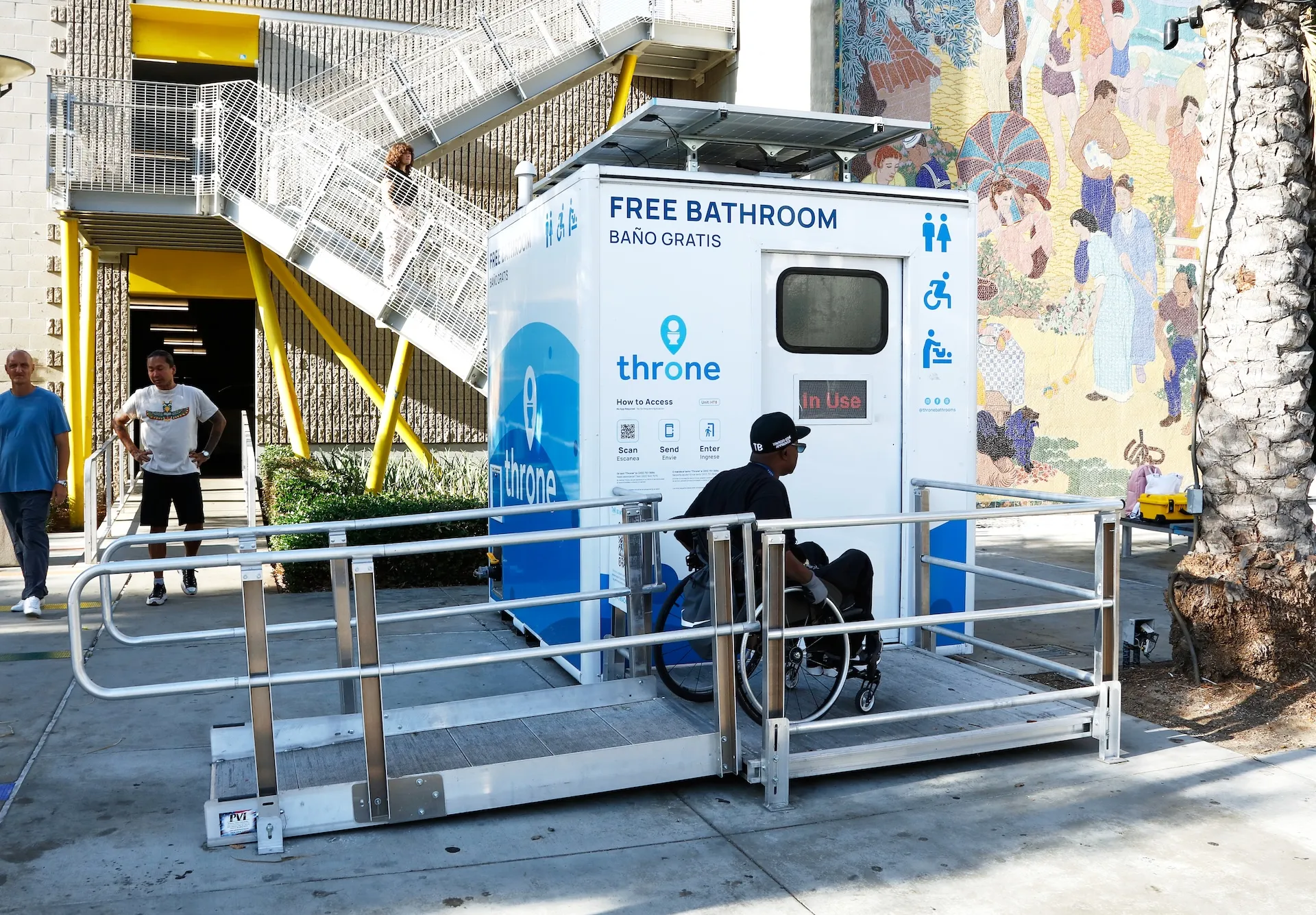 Thrones are ADA-compliant and wheelchair-accessible with a ramp, baby-changing table, and NaviLens codes to guide people who are blind or low vision.